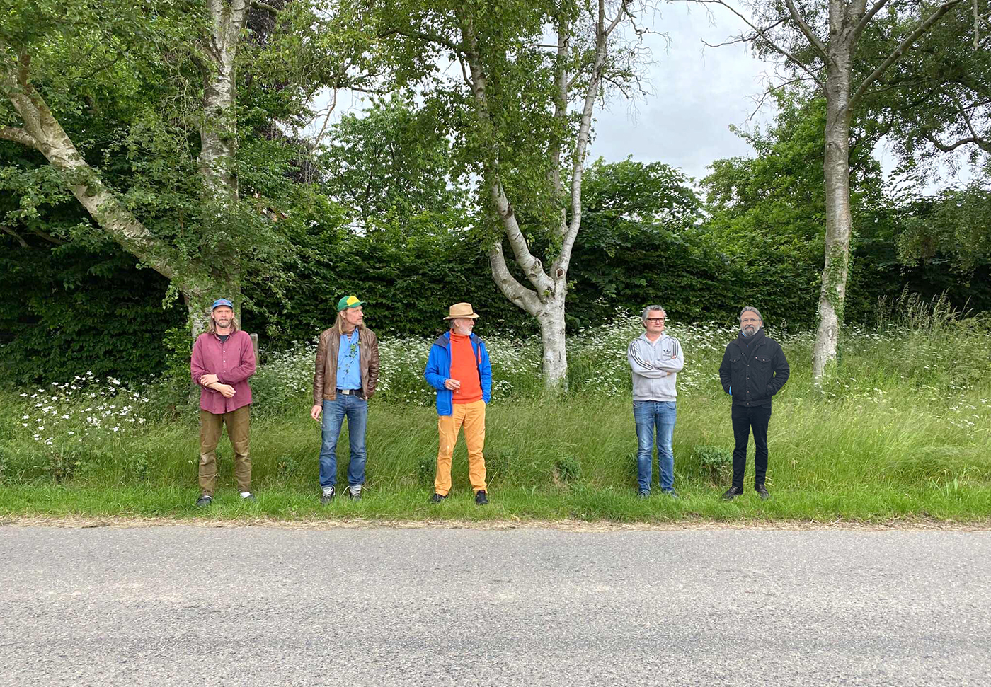 Based in Oslo and Berlin, apart from pursuing their own careers, the five artists meet up for drawing sessions in various venues, sometimes at their respective studios and always in the various galleries or museum during the production of shows, three to five days in advance of the exhibition. Martin Skauen, Ulf Carlsson and Bjørn Bjarre received their education at the Academy of Fine Art in Oslo (KHIO), Norway; Paul Dring at Kent Institute of Art and Design (KIAD), Maidstone, UK and Terje Nicolaisen at the Academy of Fine Art (KHIB), Bergen, Norway, and the Academy of Fine Art (NTNU)/, Trondheim, Norway.